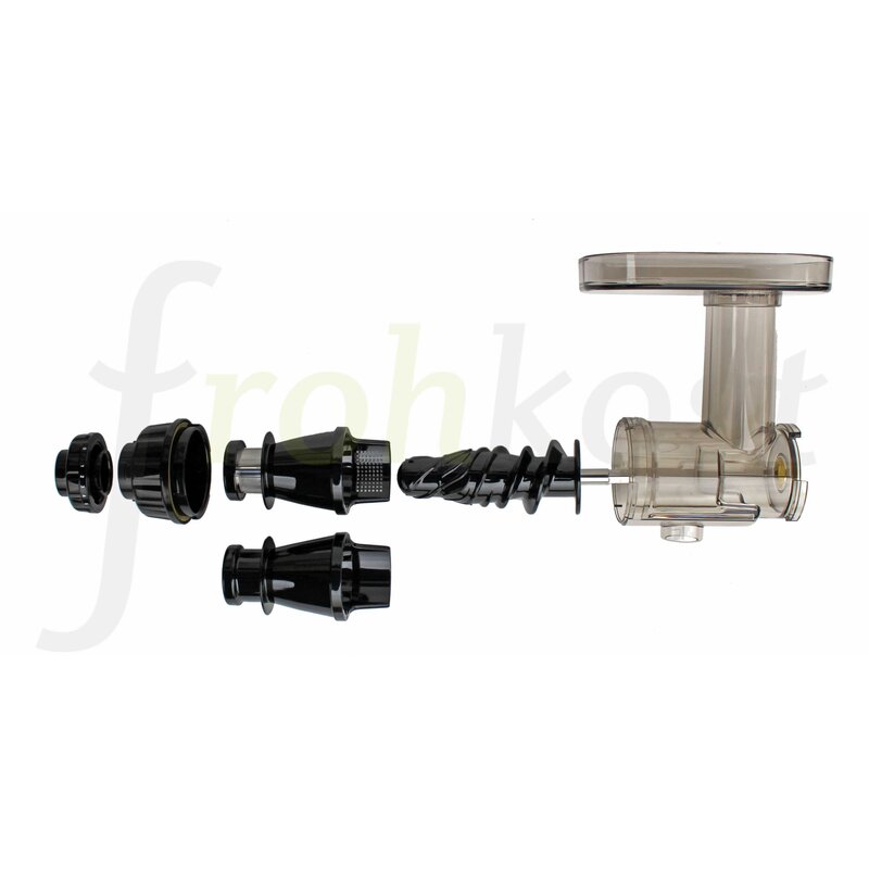 Mit der sehr robusten Pressschnecke wird das eingefüllte Pressgut zerkleinert und im Gehäuse richtiggehend ausgepresst! Beim entsaften von besonders weichfleischigem, Pressgut (Kiwi, Ananas, Erdbeeren, weiche Äpfel usw). muss mit hartfasrigem Pressgut gewechselt werden (z.B. knackige frische Äpfel wie Maigold oder hartem Gemüse). Dank innovativer Technologie konnte die Saftauspressung um weitere 10% gesteigert werden. Durch die einfache Bauweise ist diese Saftpresse im Nu gereinigt.